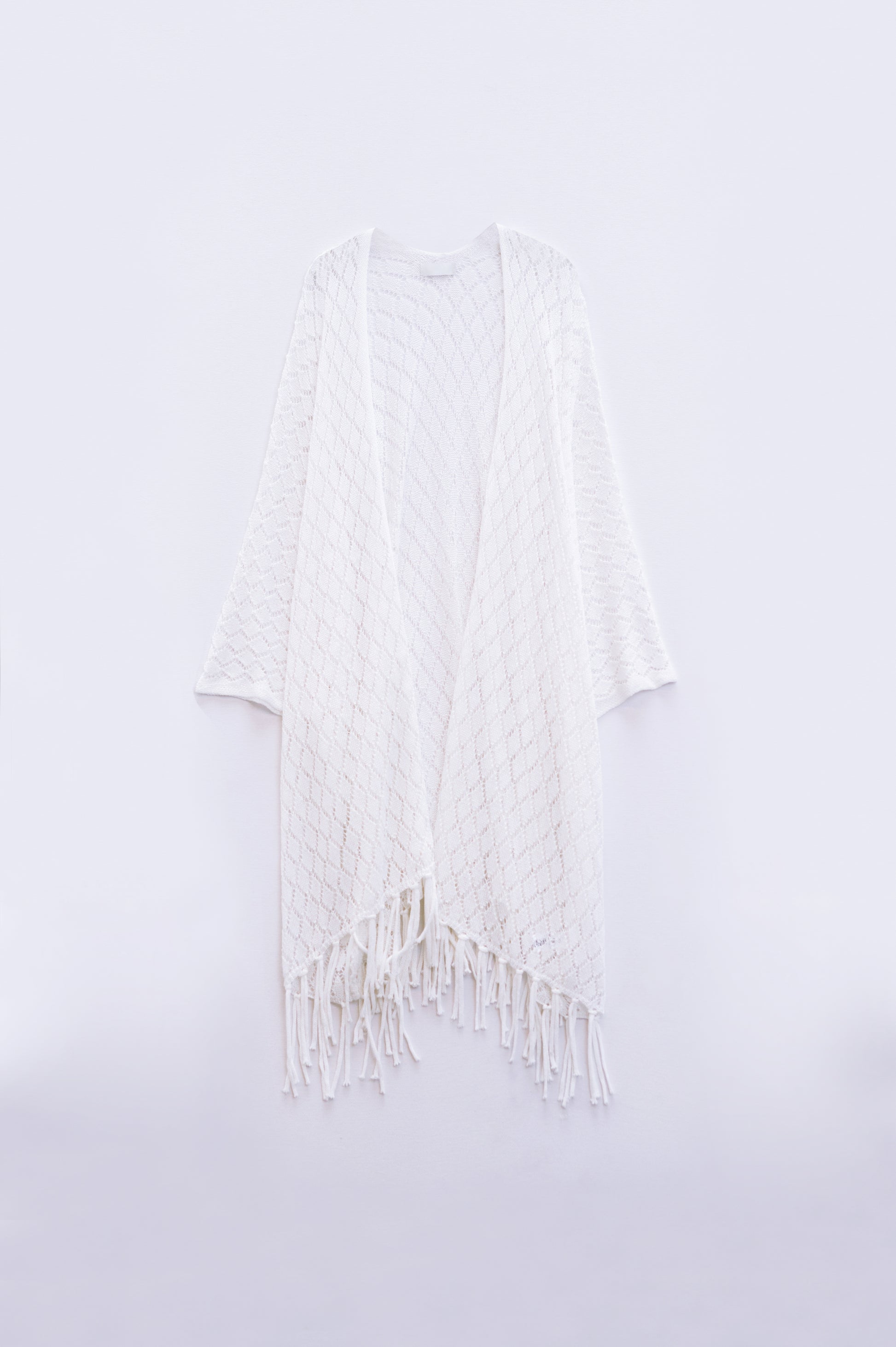 lungezza: modello midi. Sotto Categoria: Cardigan . Manica: Maniche a tre quarti. Modello: Vestibilità oversize. stile: Modello Boho. dettaglio: Orlo a frange . Tessuto: Crochet. runs big. U.