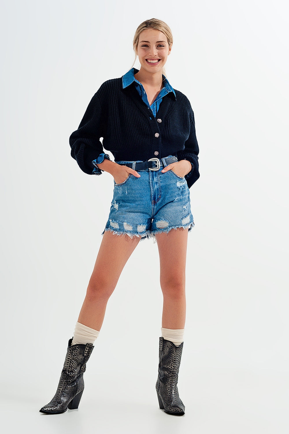 Cardigan nero con maniche a lunghe e bottoni con strass
