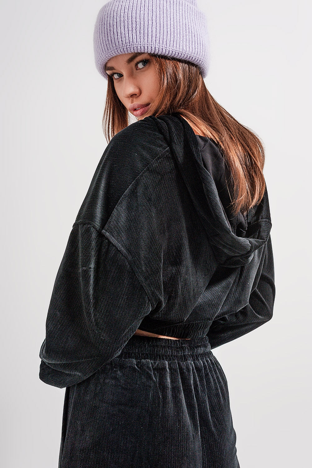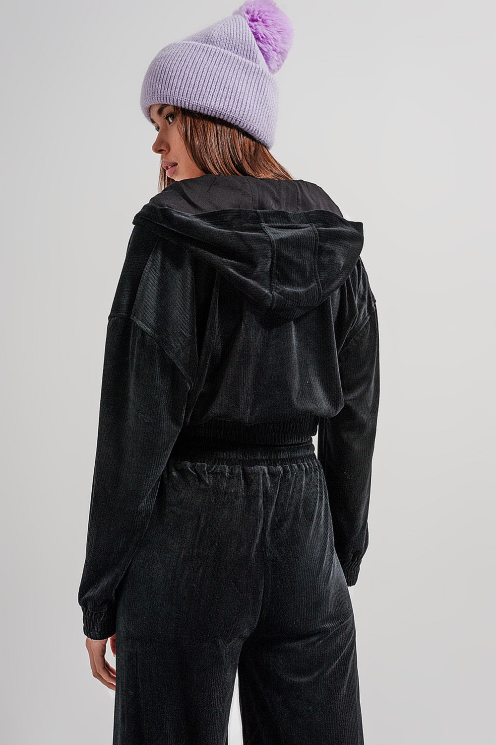Sotto Categoria: Felpa . Collo: Scollo a V. Manica: Manica lunga. stile: Modello Urban. dettaglio: Bordi a coste. Tessuto: Lavorazione a coste. Chiusura : Chiusura con zip. Bordo : Bordo elasticizzato. Dettagli del prodotto: Cappuccio fisso. runs true to size. S.