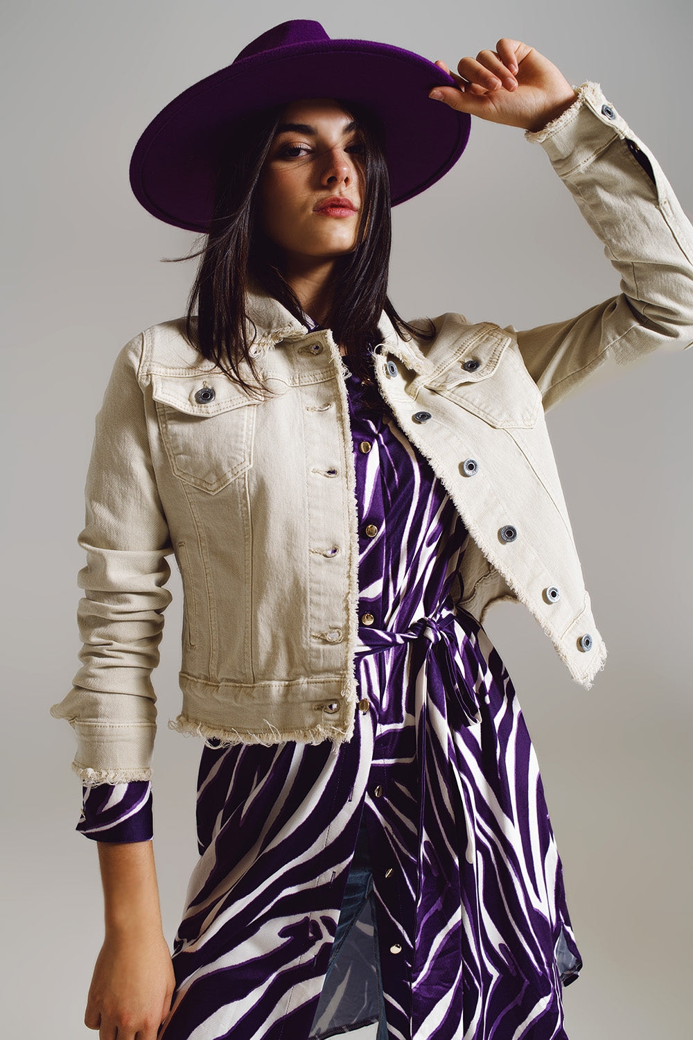lungezza: Taglio corto. Sotto Categoria: Giacca di jeans . Collo: Scollo a V. Manica: Manica lunga. Modello: Vestibilità standard. stile: Modello Casual. Tessuto: Denim elasticizzato. Tasche: Tasche sul petto. Chiusura : Chiusura con bottoni. Bordo : Orlo sfrangiato. runs true to size. S.