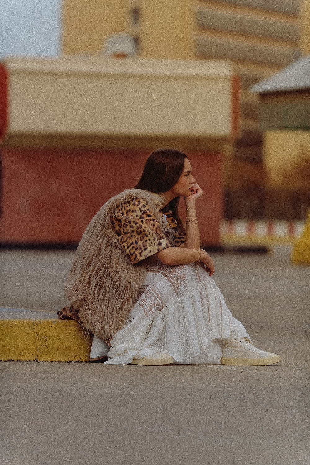 gilet beige in pelliccia lunga