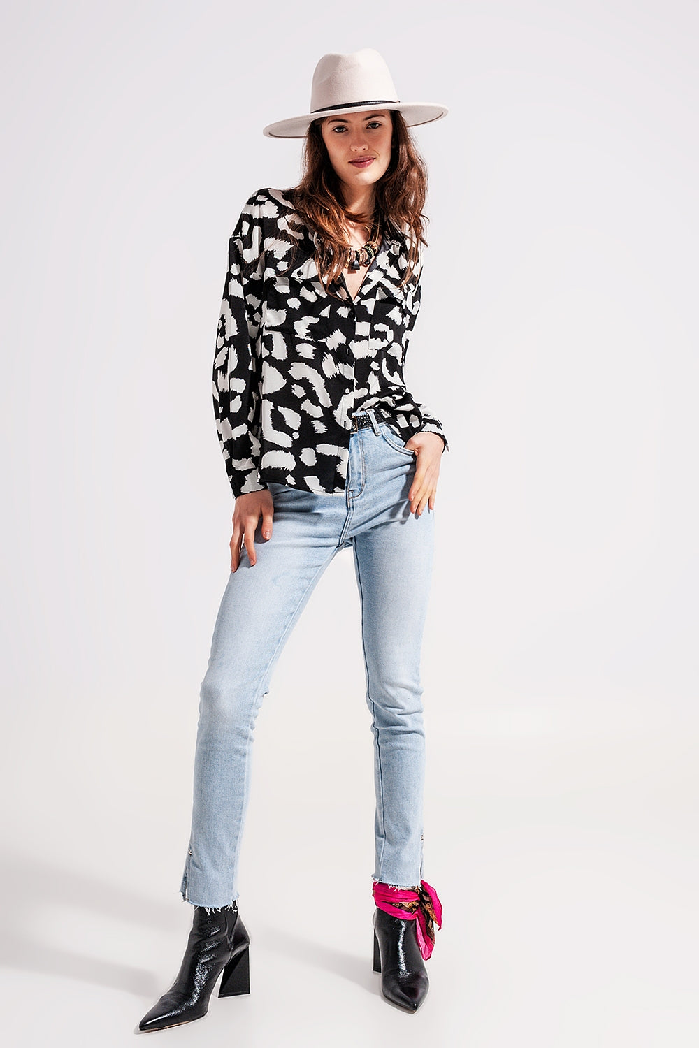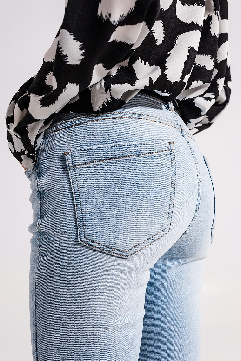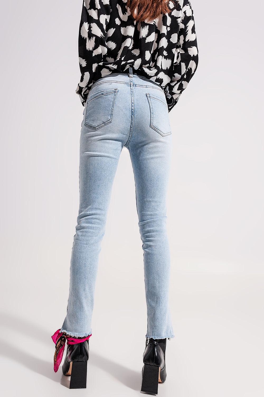 Jeans a vita alta con spacco sul fondo lavaggio
