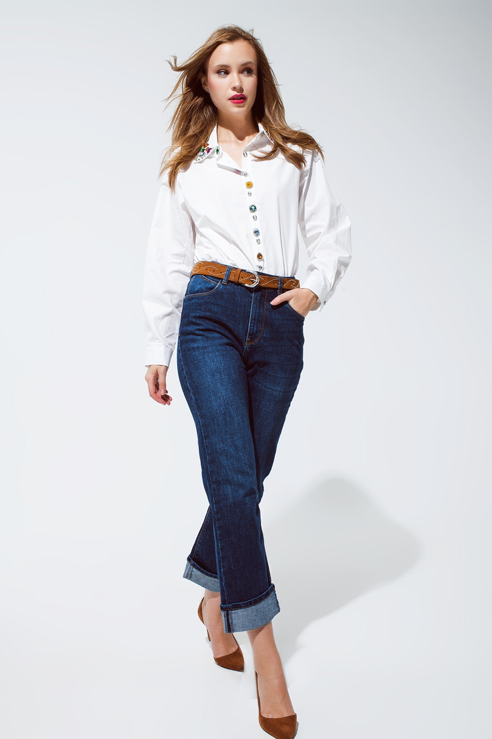 Jeans blu dalla vestibilità rilassata con dettaglio con orli risvoltati