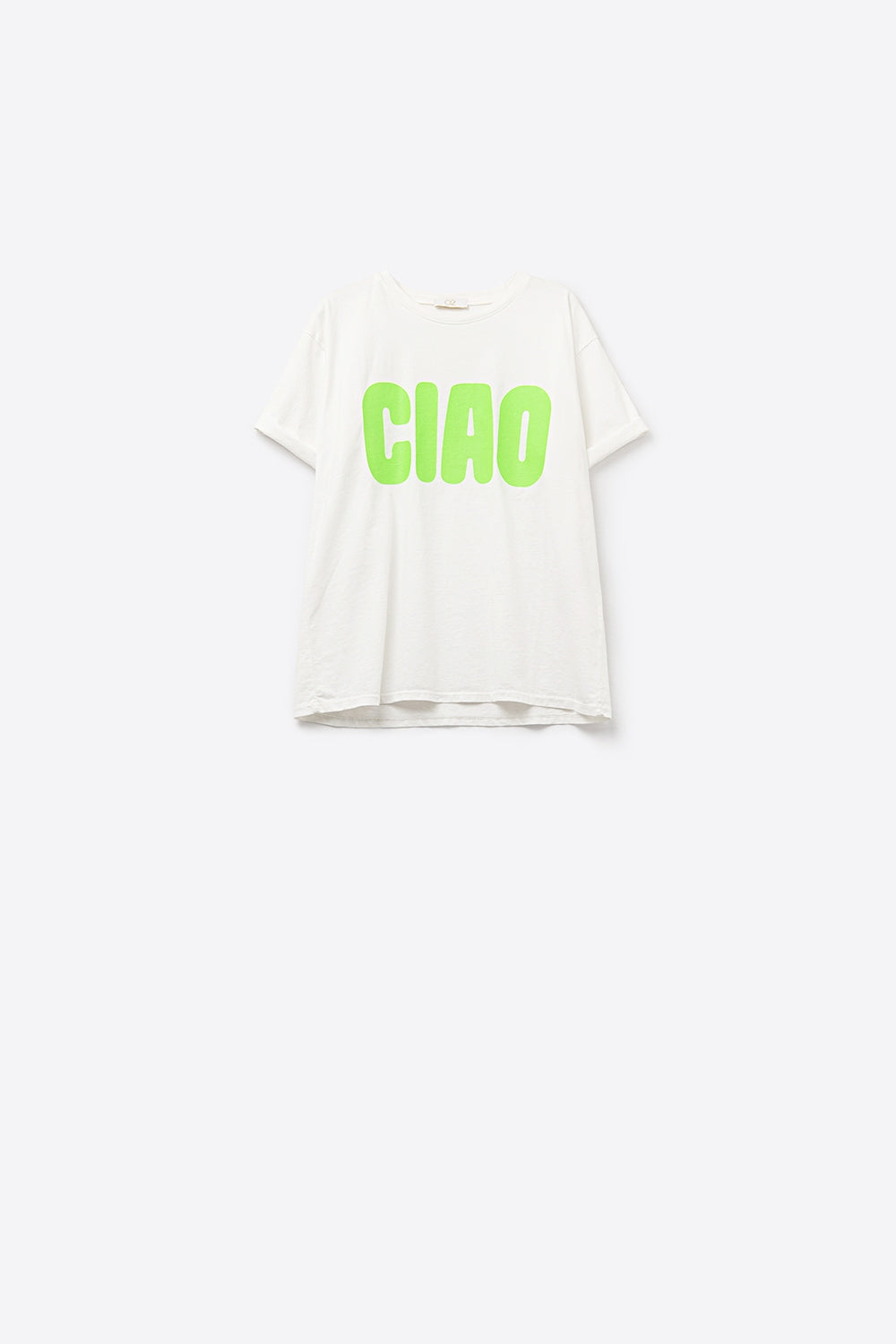 Maglietta CIAO bianca e rilassata con lettere verdi