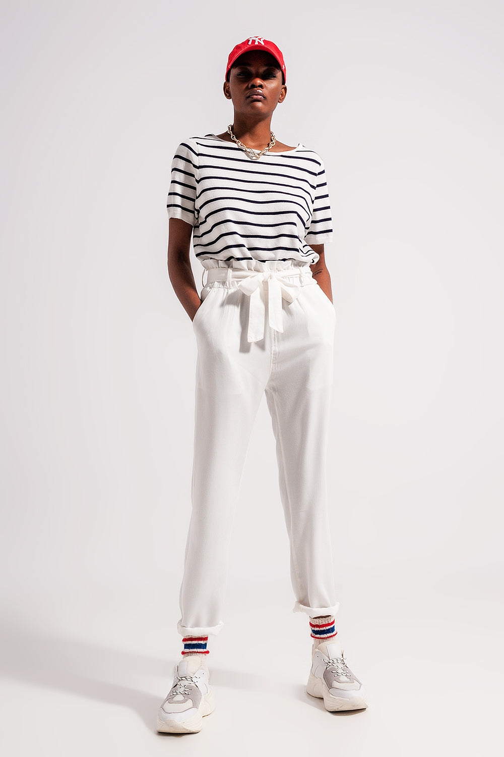 Sotto Categoria: Maglione. Collo: Girocollo. Manica: Manica corta. Stampa: Motivo a righe. stile: Modello Casual. dettaglio: Apertura sul retro con laccetti. Tessuto: Maglia leggera. Chiusura : Chiusura con laccetti sul retro. runs true to size. S.