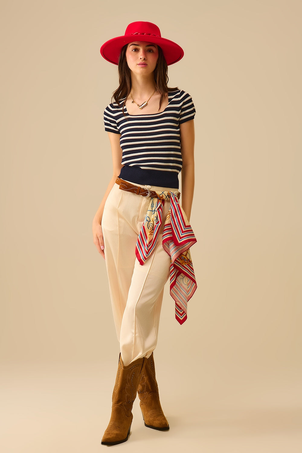 lungezza: Taglio corto. Sotto Categoria: Maglione. Collo: Scollo quadrato. Manica: Manica corta. Stampa: Motivo a righe. Modello: Modello aderente. stile: Modello Giornaliero. Tessuto: Maglia leggera. runs small. U.