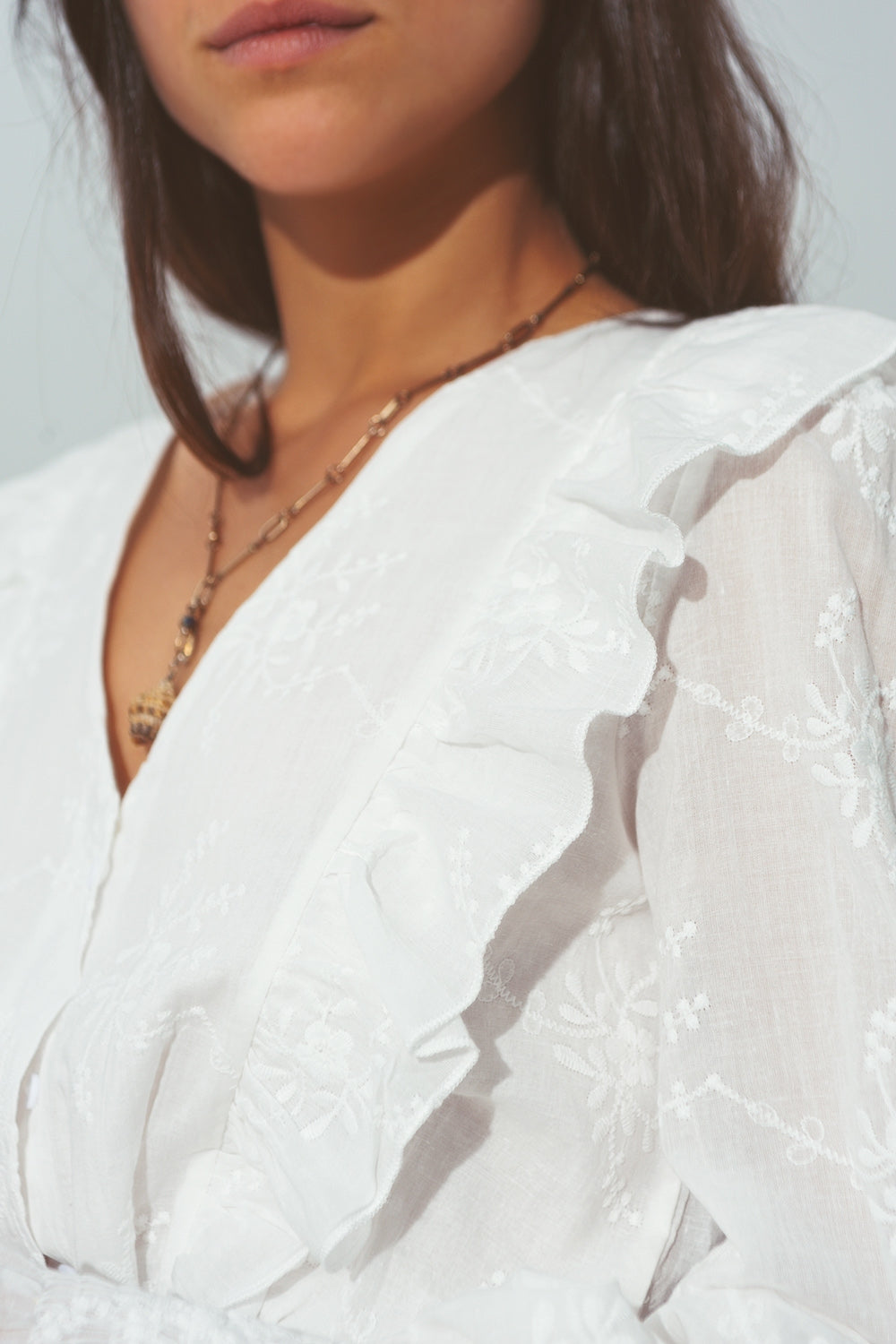 Bordo : Maniche con elastico. Chiusura : Chiusura con bottoni. Collo: Scollo a V. Dettagli del prodotto: Bordi con volant. dettaglio: Bottoni a vista. lungezza: modello corto. Manica: Manica lunga. Modello: Vestibilità standard. Sotto Categoria: Vestito. Stampa: Motivo floreale. stile: Modello Boho. Tessuto: Cotone. Vita : Cintura non inclusa. runs true to size. S.
