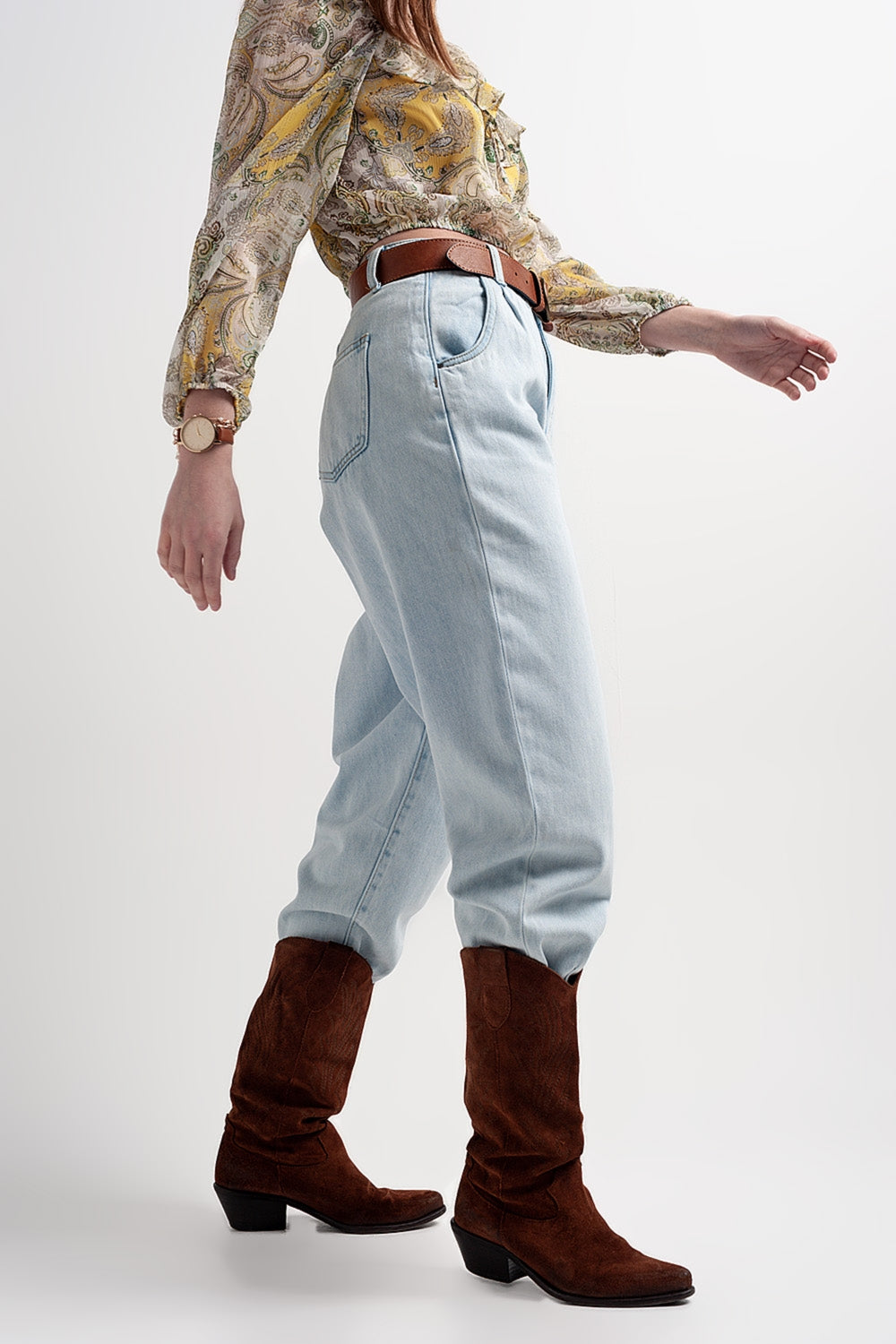 Mom jeans extra larghi a vita alta lavaggio chiaro