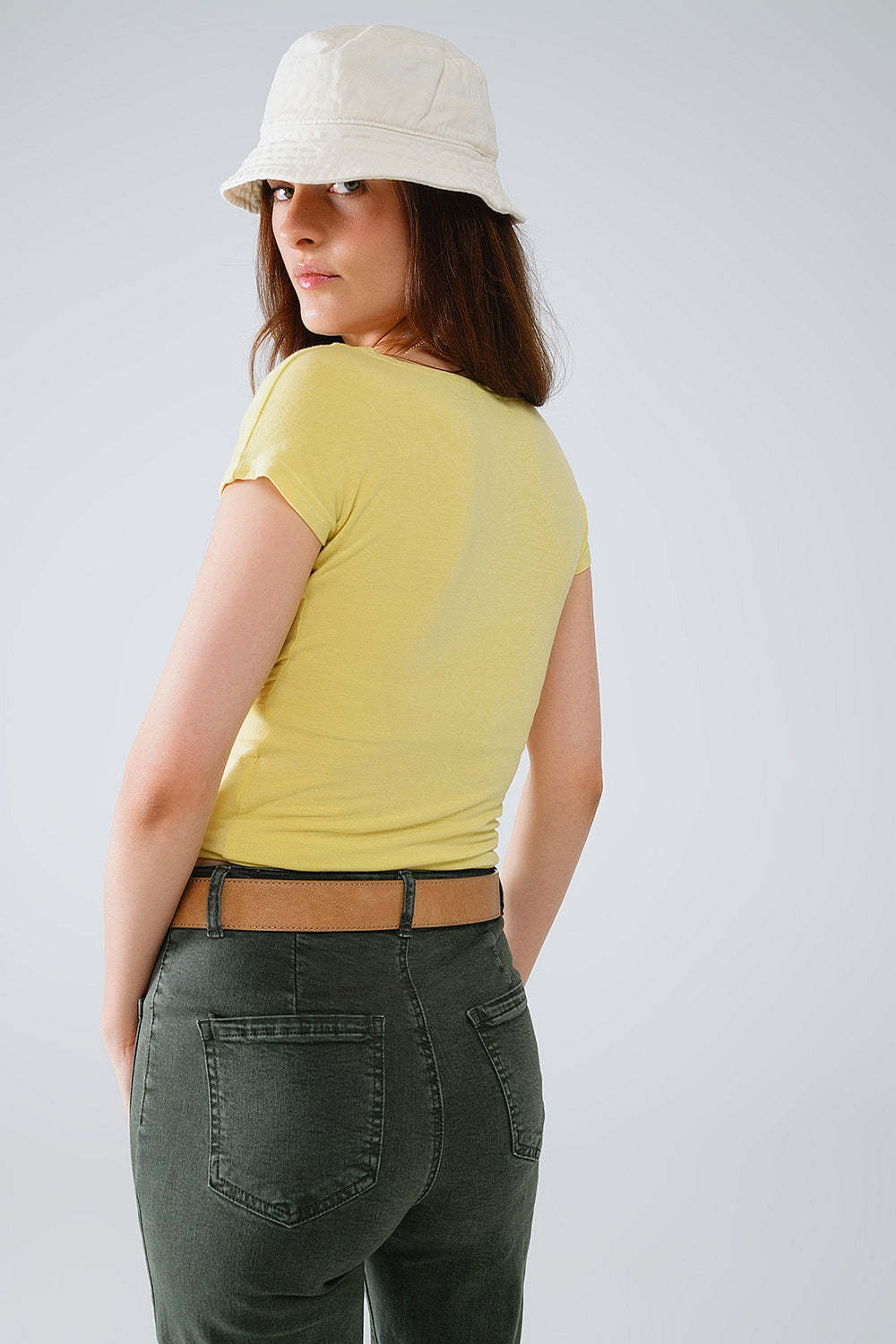 Top aderente con scollo a V e maniche a cappuccio incrociate in lime