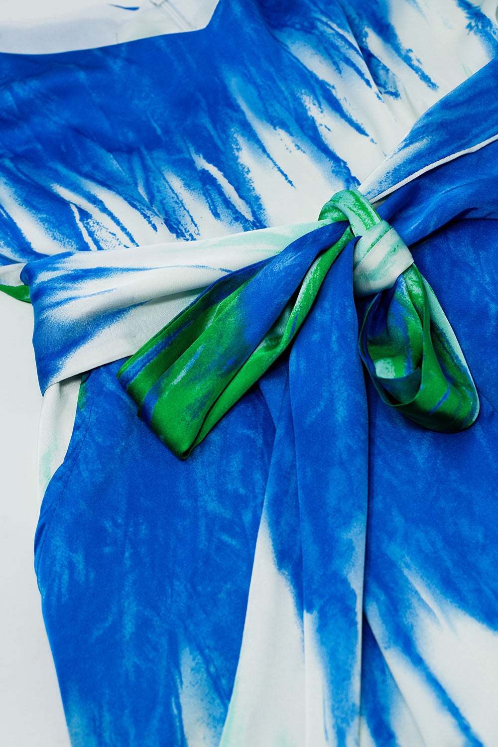Sotto Categoria: Tuta jumpsuit. Collo: Scollo a V. Manica: Senza maniche. Stampa: Stampa tie-dye. Modello: Vestibilità standard. Gamba: Fondo ampio. stile: Modello Giornaliero. Tessuto: Raso. Vita : Annodato in vita. runs true to size. S.